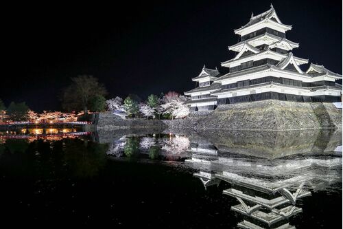 桜の開花期間中、ライトアップされる松本城。国宝に指定されている威厳漂う天守が、お堀に美しく映り込んでいます。 明日からは広島・山口旅行です。うさぎ島で知られる大久野島に行ったり、マツダスタジアムでの広島−日ハム戦を見たり、山口湯田温泉で維新…